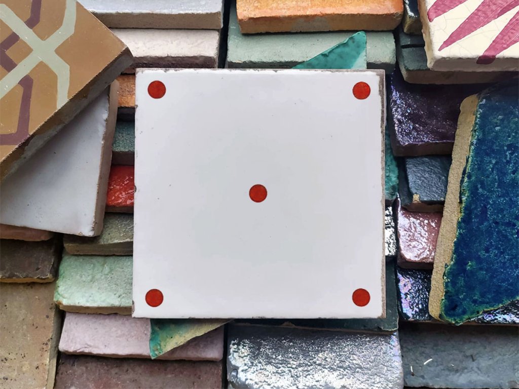 Da Vinci Forli Červený puntík v rozích a uprostřed obklad lesk S – rozměr na výběr