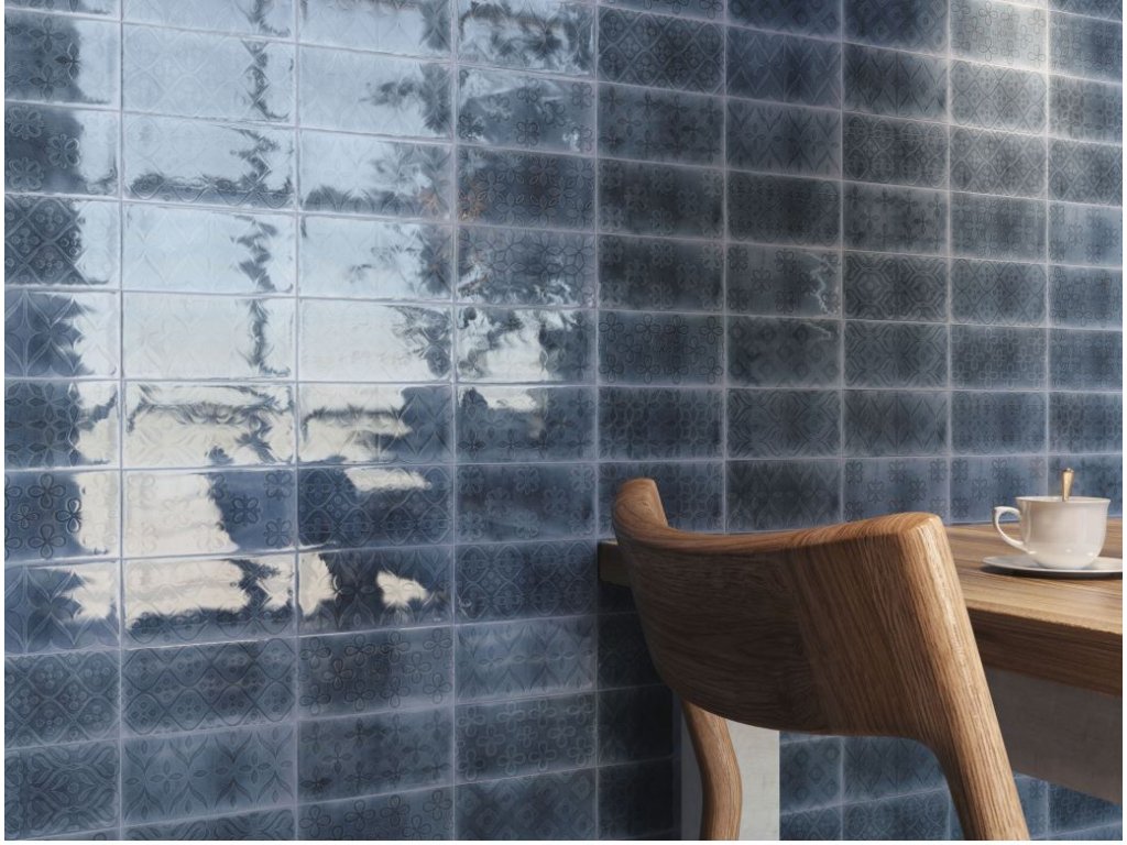 Detail na dekorovaný obklad ze série, který také můžete najít na našem eshopu.