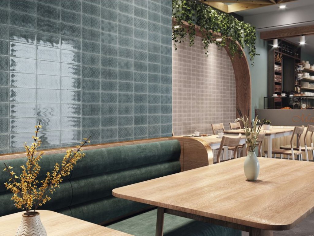 Jednobarevné obklady ze série Sonora jsou určeny na stěny v interiéru. Výjimečně působí v koupelnách, kuchyních, ale také v komerčních prostorách (níže například ukázka z restaurace). Dobře se doplňuje s ostatními obklady ze série.