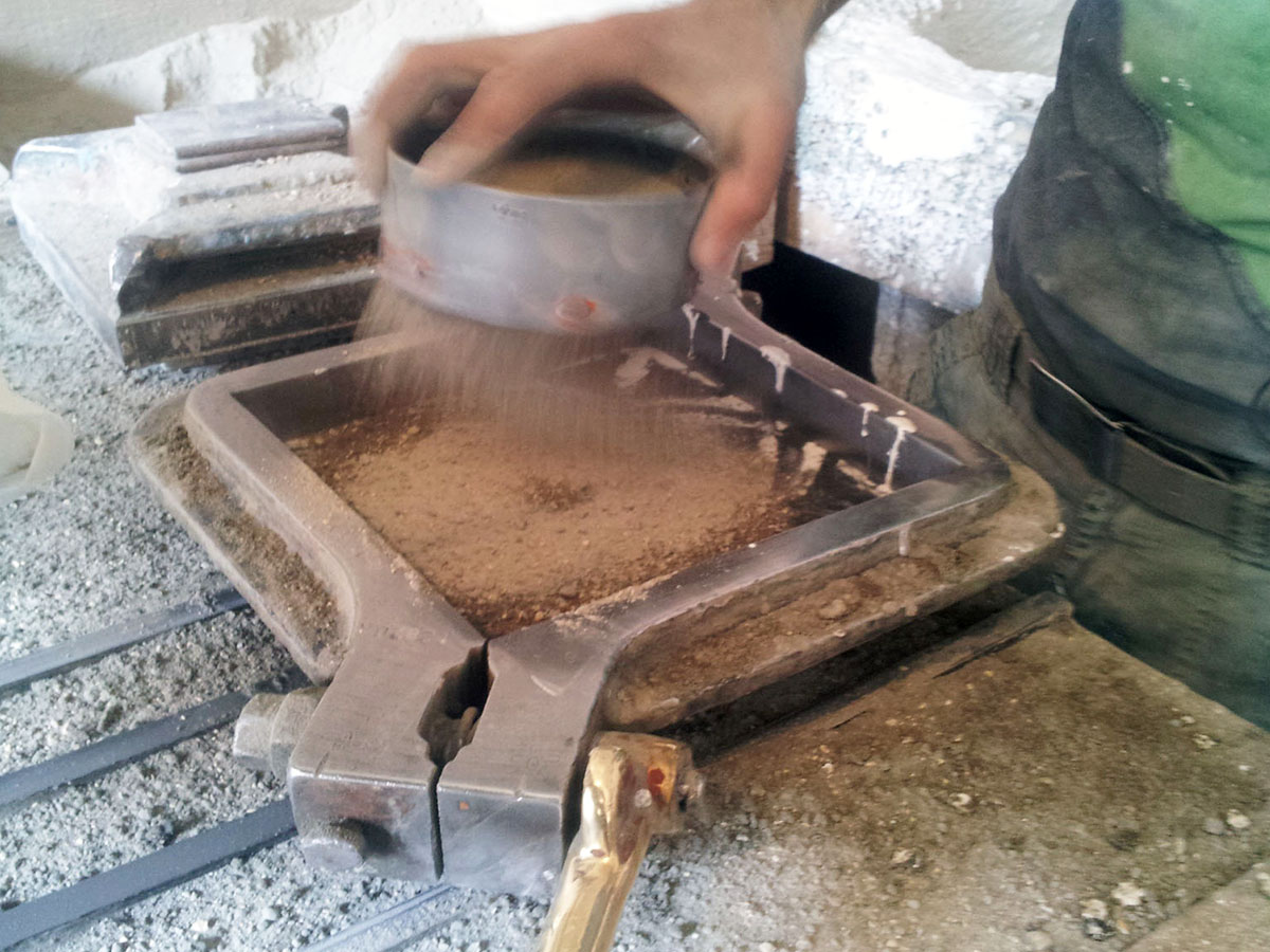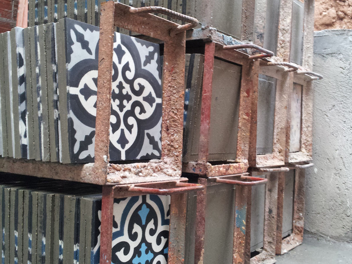 Do kovové formy se ručně vylévá cementová směs a následně pigmentované směsi do jednotlivých políček vybraného vzoru – tloušťka této vrstvy je cca 3 až 4 mm. Následuje podkladová vrstva, lisování hydraulickým lisem a několik týdnů zrání. Výsledkem je hutná, hladká dlaždice s barevnou vrstvou v celé ploše motivu.
