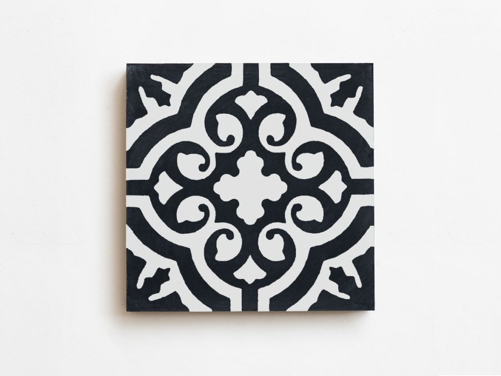 Azahar Negro Inverso – historická cementová dlažba – ornamentální motiv – 20x20, mat