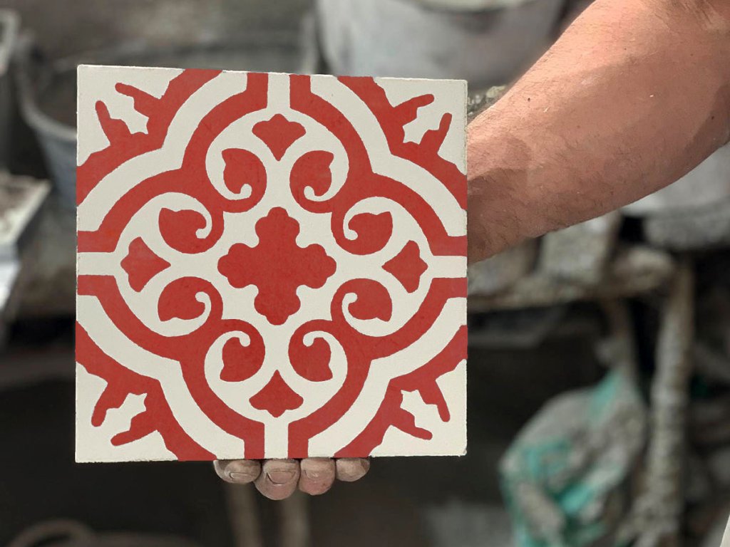 Azahar Rojo – historická cementová dlažba – ornamentální motiv – 20x20, mat