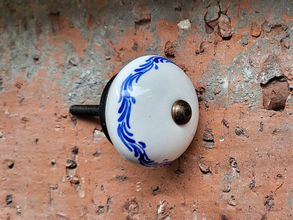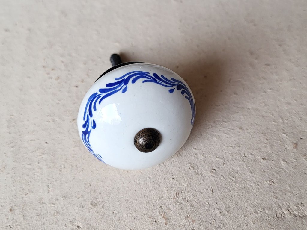 - krásná bílá porcelánová úchytka s ručně malovanou selskou vlnkou