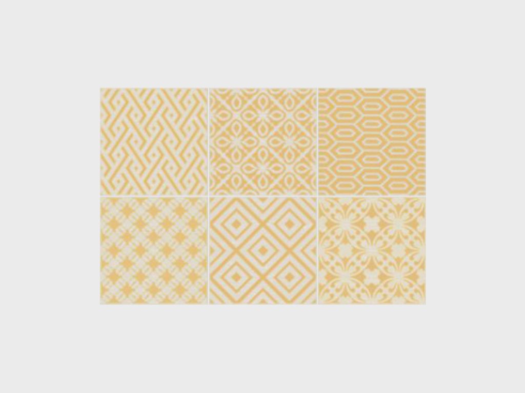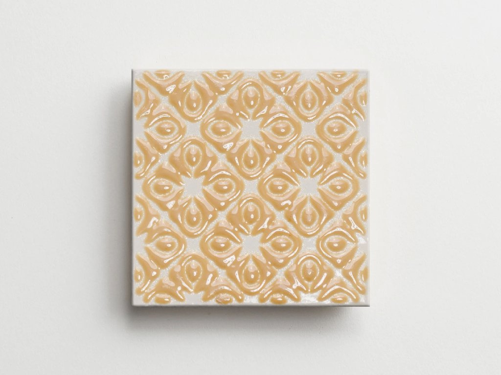 Elios Clay Pattern Mustard – reliéfní obklady – 10x10, lesk
