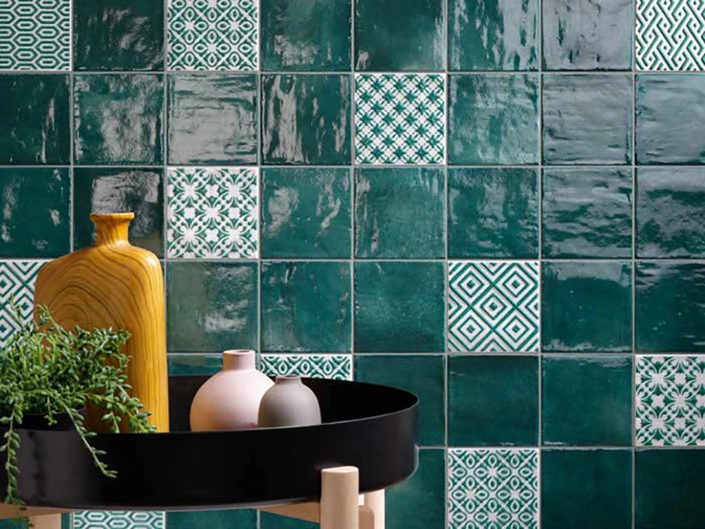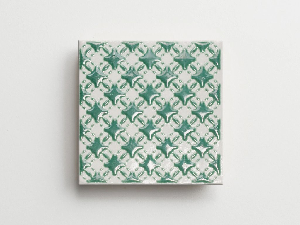 Elios Clay Pattern Emerald – reliéfní obklady, mix dekorů – 10x10, lesk