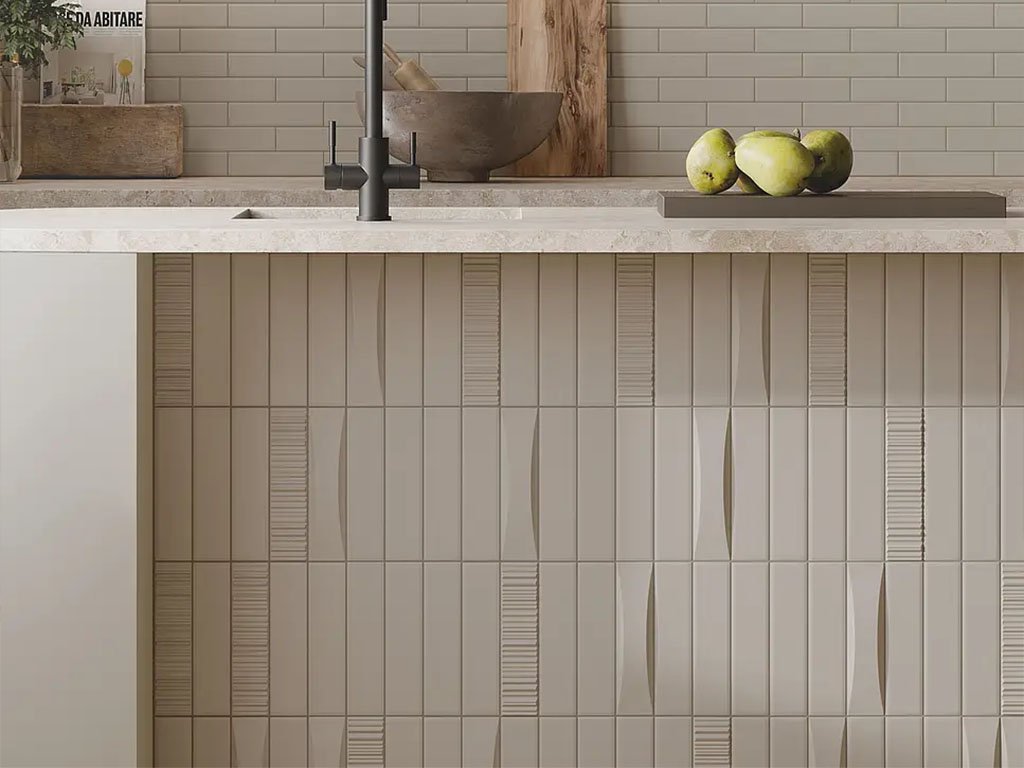 - moderní kolekce obdélníkových obkladů různých povrchů - lesklých a matných, reliéfních a hladkých - k nekonečným vzájemným kombinacím