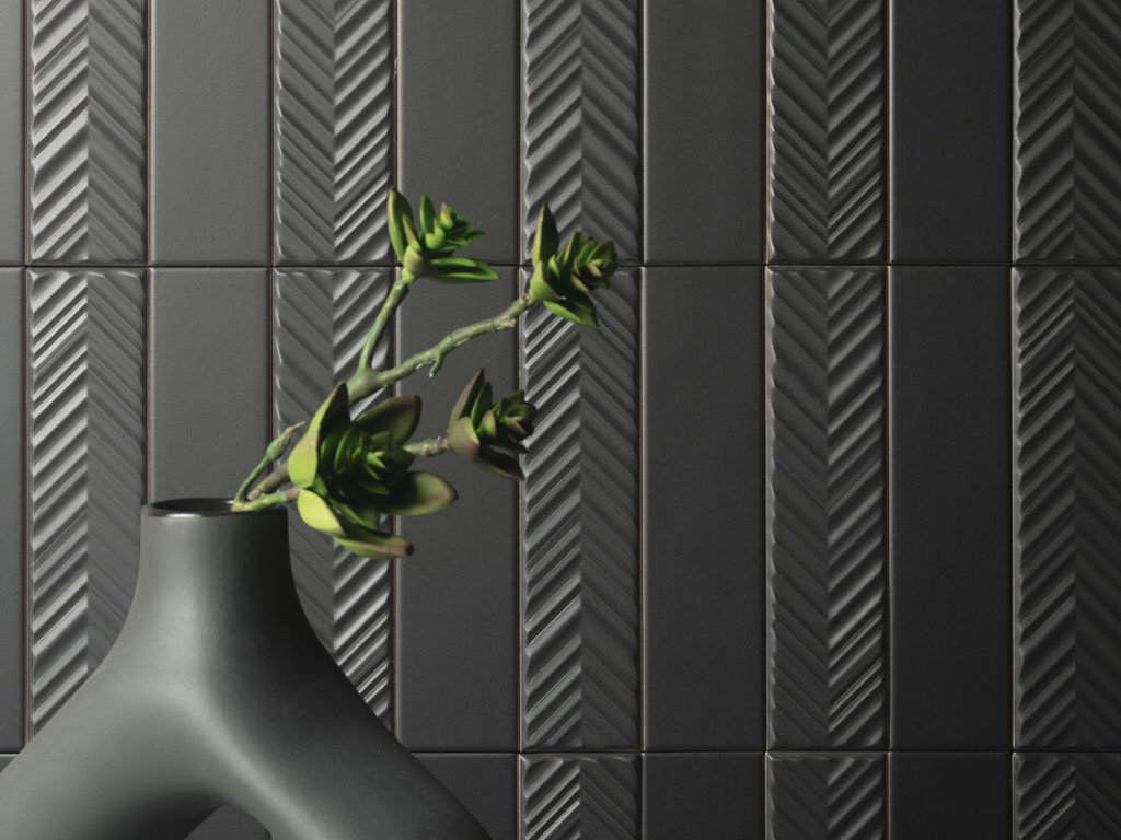 Elios Dust Ink Duna Gloss antracitové reliéfní obklady 5x20 lesk