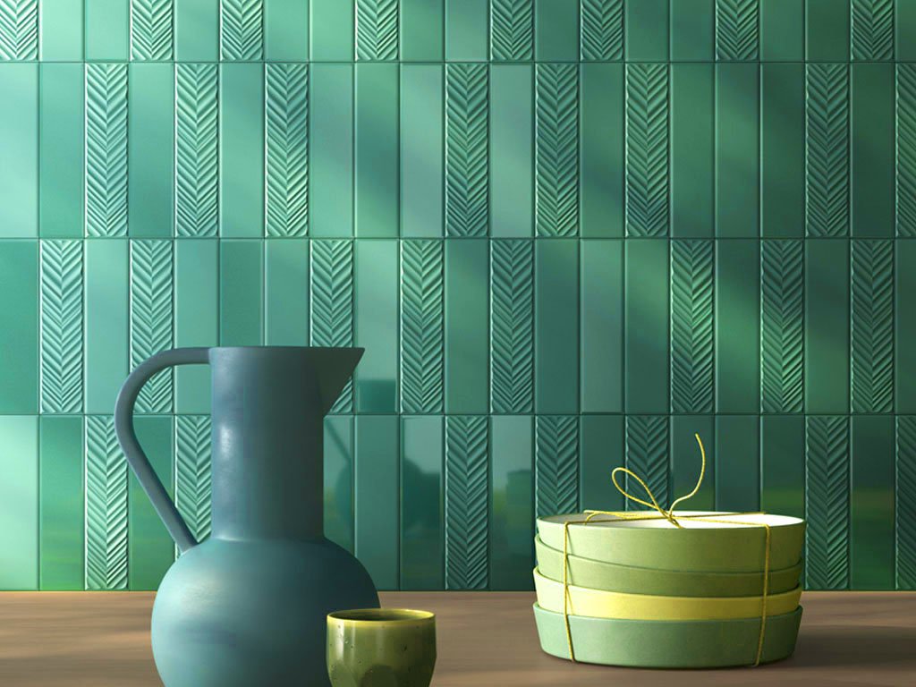 Elios Dust Pine Duna Gloss zelené reliéfní obklady 5x20 lesk