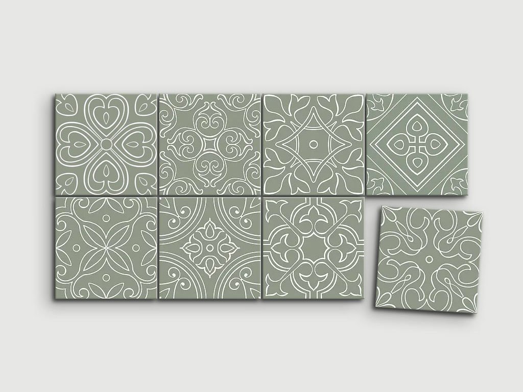 - dekory imitují historické reliéfy pomocí jednoduchých bílých linií, díky nimž má kolekce univerzální využití ve všech stylech, retro, moderních a minimalistických