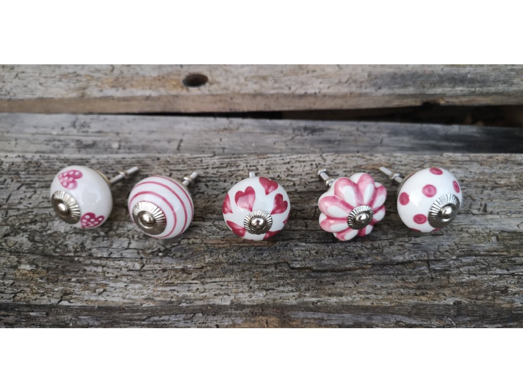 Keramické úchytky sada 5 ks mix růžovobílých ruční práce