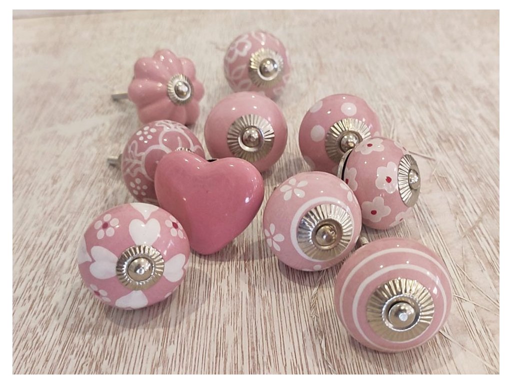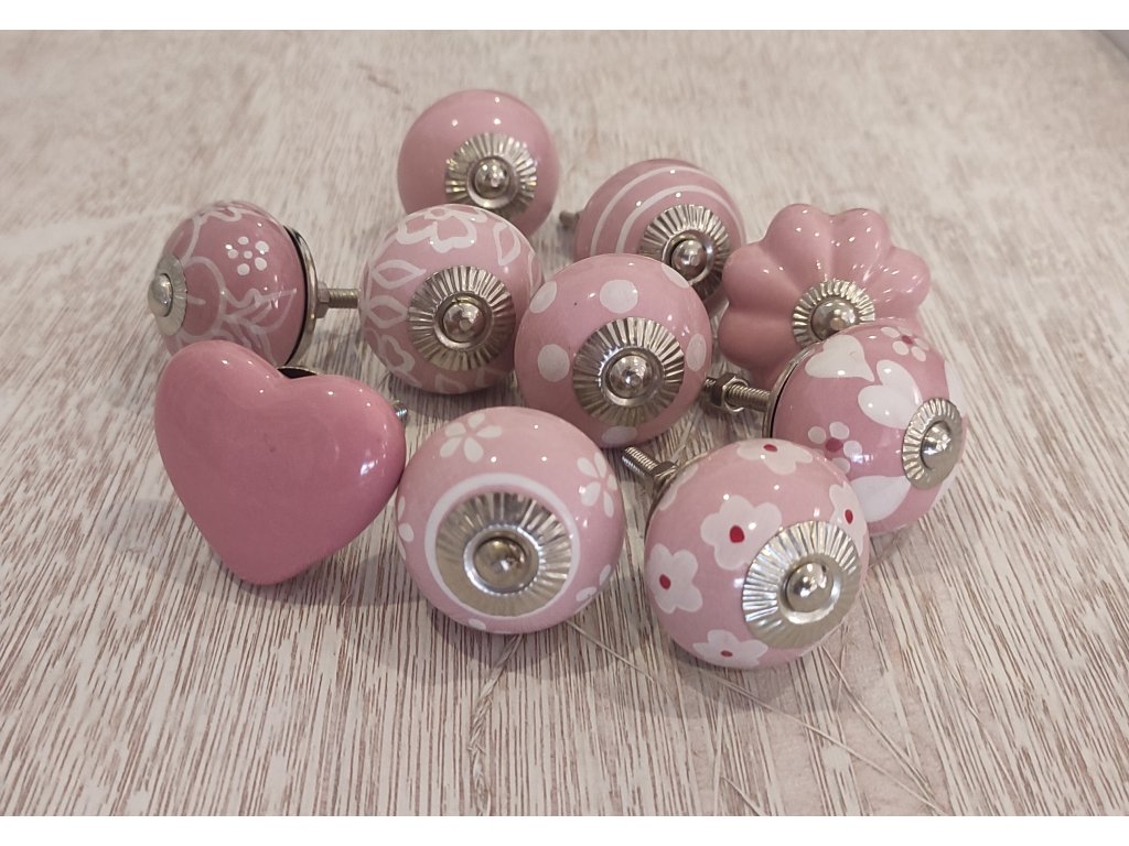 Keramické úchytky v sadě 10 ks mix růžových ruční práce