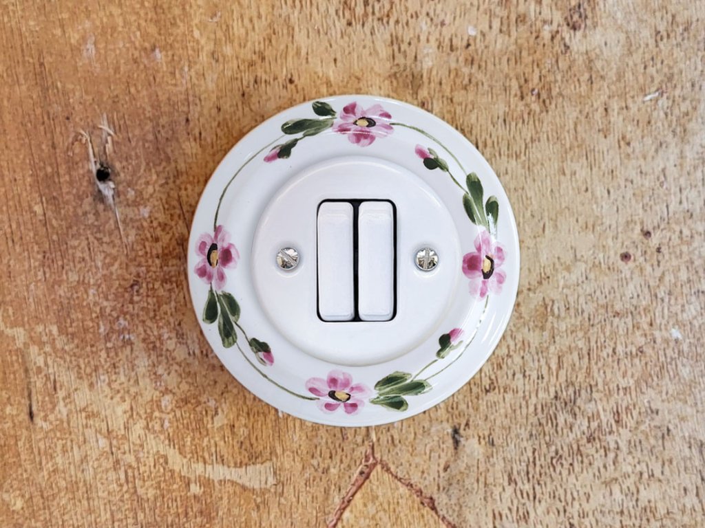 Da Vinci Růžový kvítek vypínač č. 6+6 porcelánový ručně malovaný 10x10 M