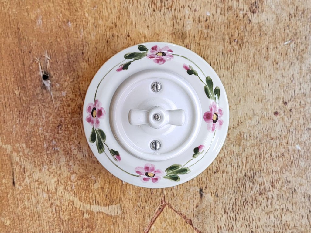 Da Vinci Růžový kvítek vypínač č. 6 otočný schodišťový porcelánový ručně malovaný 10x10 M