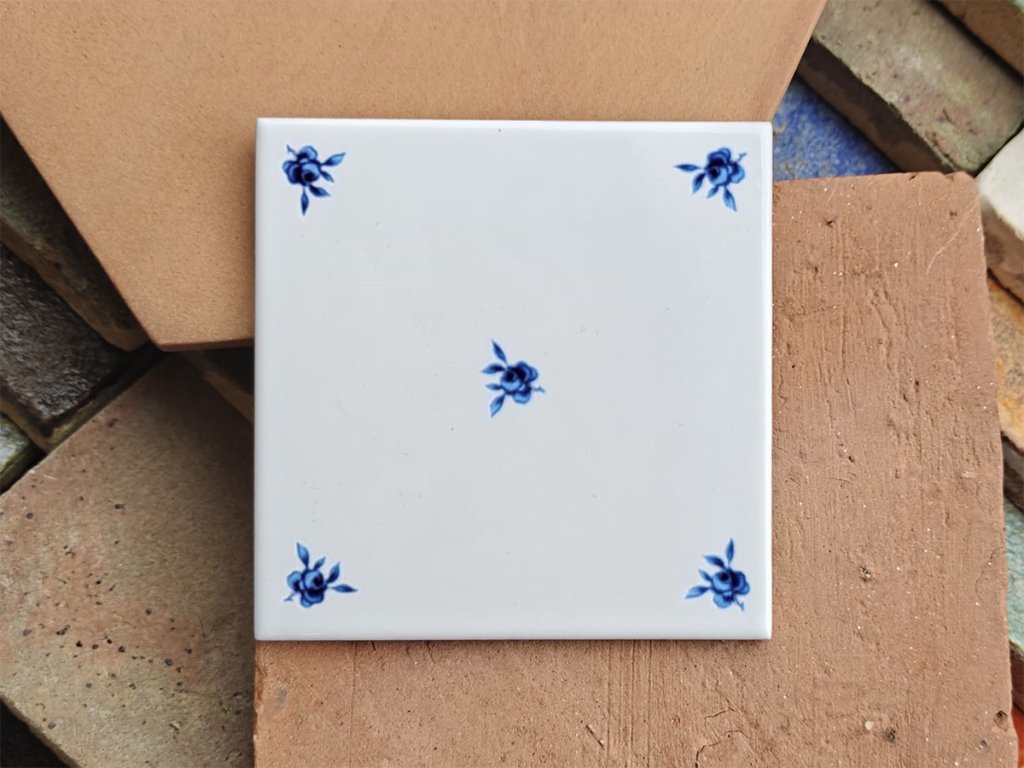Da Vinci – Modrá růžička, v rozích a uprostřed — obklady 10×10 (sítotisk; povrch: lesk/mat)