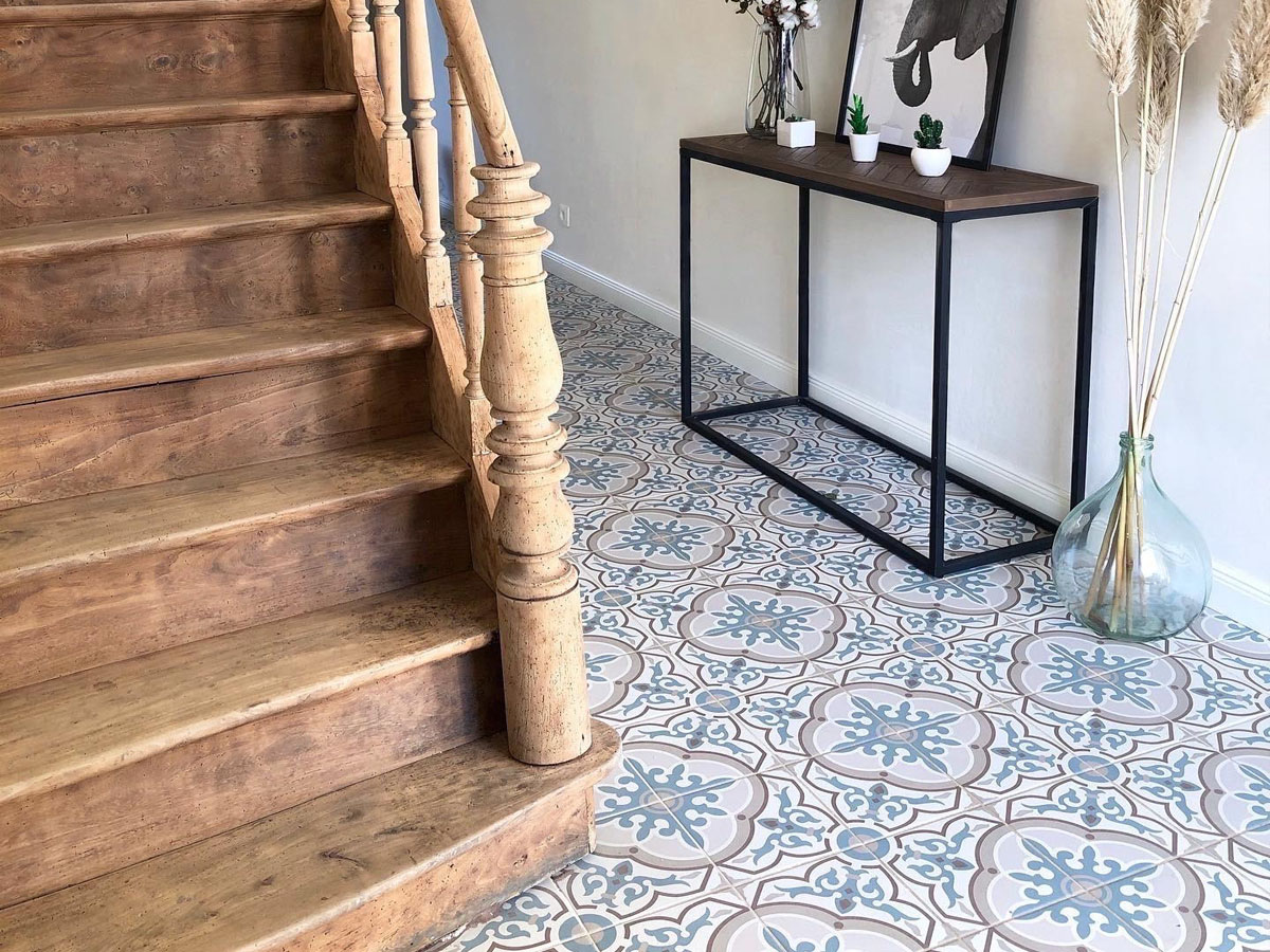 Vstupní prostor je ideální místo pro výraznější povrch. Člověk jím sice prochází jen krátce, ale vidí ho každý den. Dlaždice 20×20 tu mohou vytvořit něco jako keramický koberec — pevný, praktický a vizuálně zajímavý.