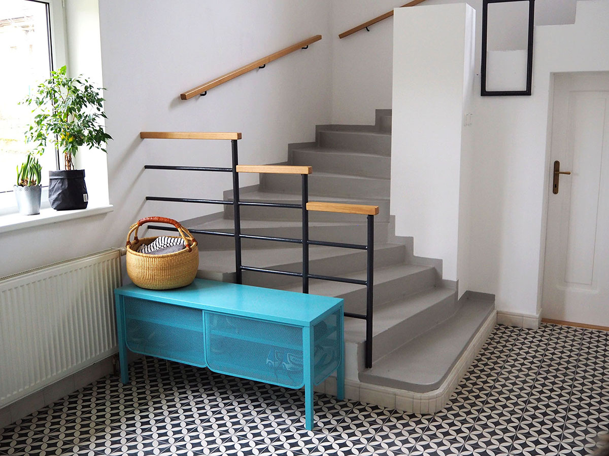 Právě v chodbě bývá vidět, jak moc záleží na celku. Nestačí vybrat pěknou dlažbu. Důležitá je i návaznost na podlahy v dalších místnostech, výmalba, úložné prvky a světlo.