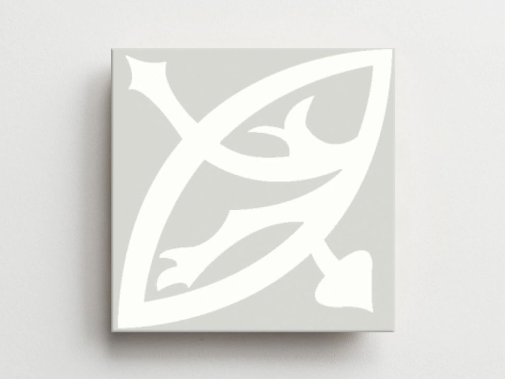 Vzorovaná čtvercová dlaždice Revoir Paris La Madeleine Zelie Gris ve formátu 20×20 cm s matným povrchem. Na světle šedém podkladu vyniká elegantní bílý ornament s jemnými křivkami. Na ploše vytváří čistou, vzdušnou kobercovou kresbu – skvělá volba do koupelen, kuchyní i vstupních hal. Snadno ji zkombinujete s jednobarevnými kusy série (ivory/grey/charcoal).