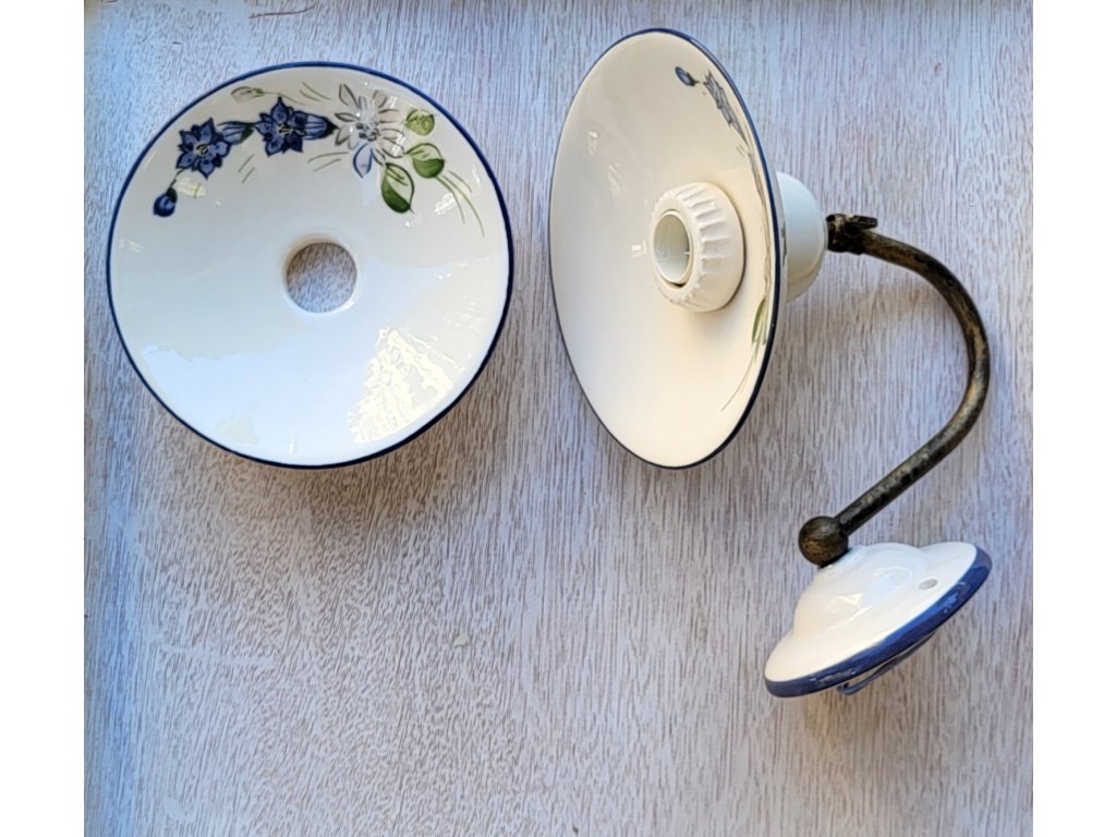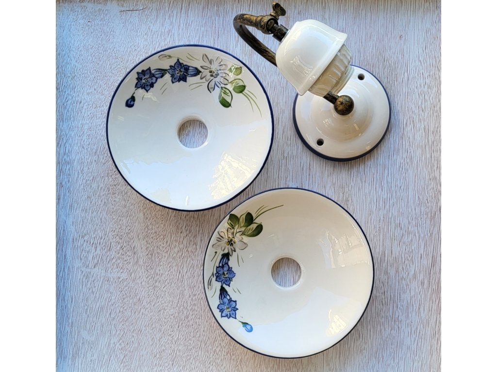 Nástěnné svítidlo keramické bílé modrá linka a kvítky 4100