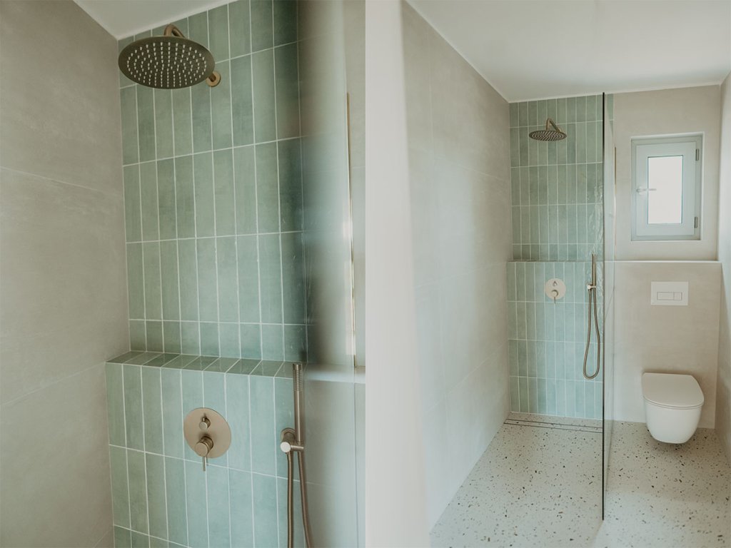 - Skvěle funguje s mosaznými i černými bateriemi a s terrazzo dlažbou.