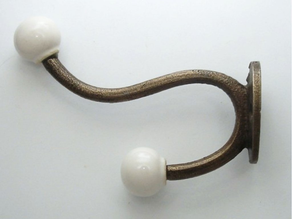 Selský dvojitý háček retro bílý litinový keramický 6,5 cm
