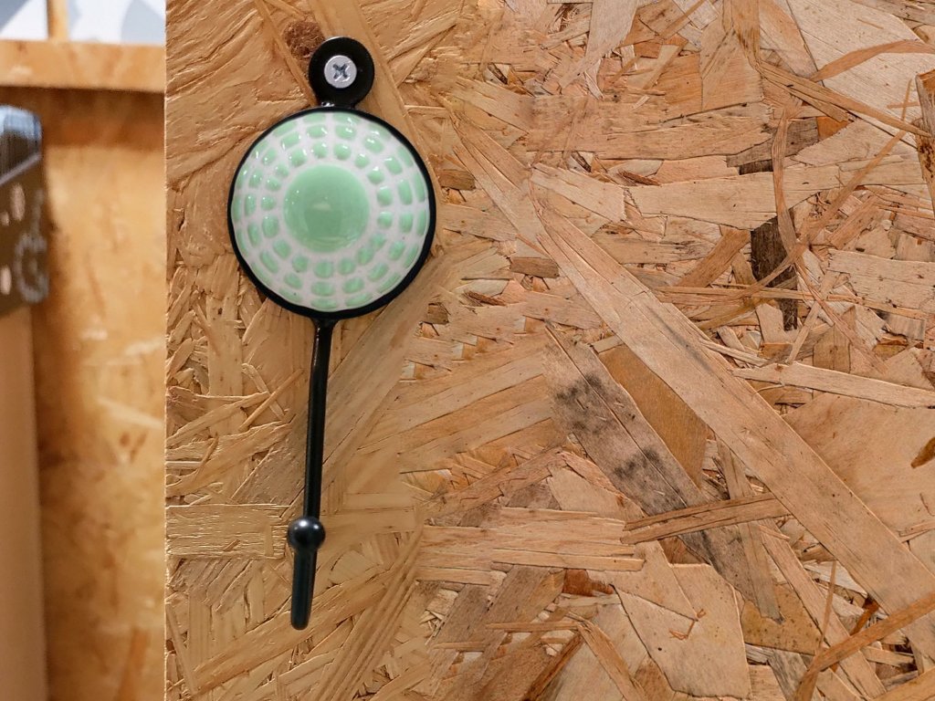 Věšák | háček kovový s keramickou ozdobou - světle zelené obdélníčky
