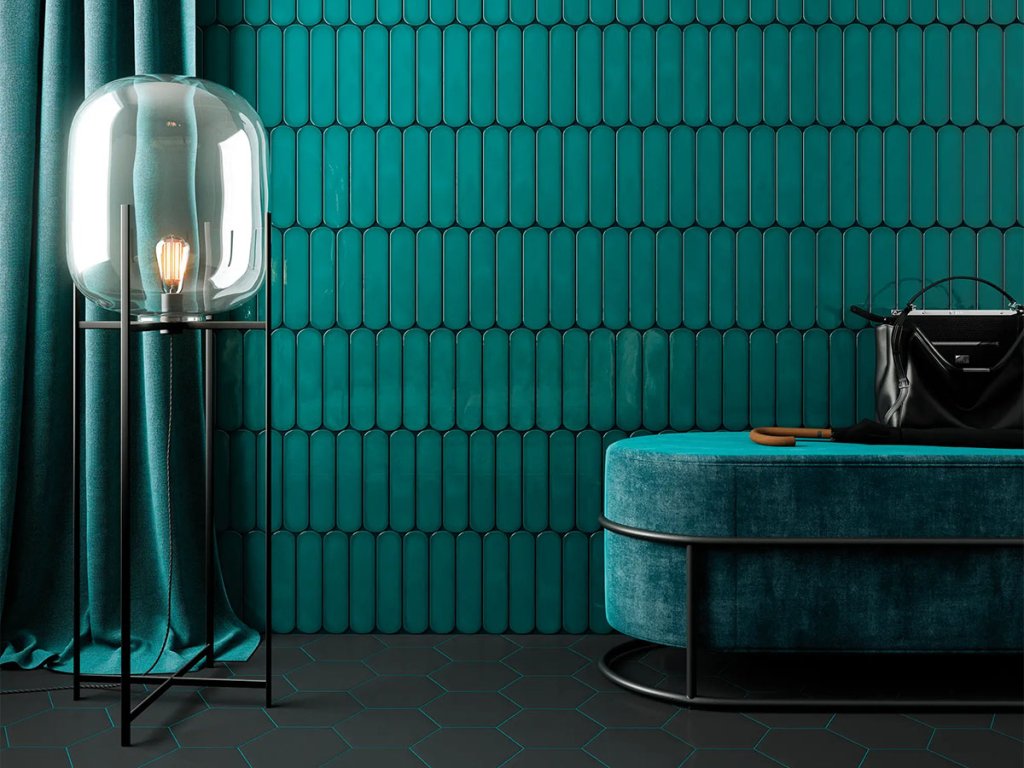 WOW Grace O Teal petrolejové oválné obklady 7,5x30 mat